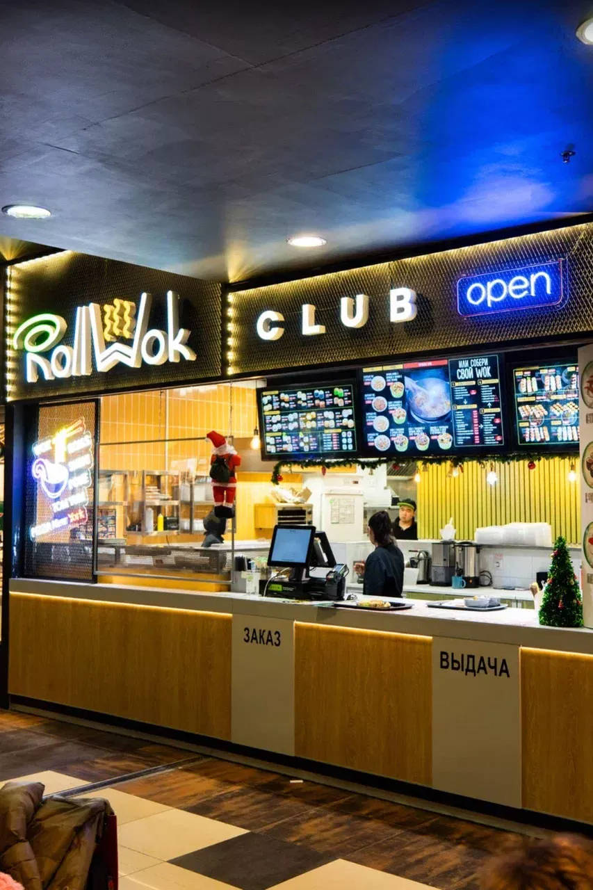Брендирование торговых точек суши-бара «Roll Wok Club» в Заозёрном